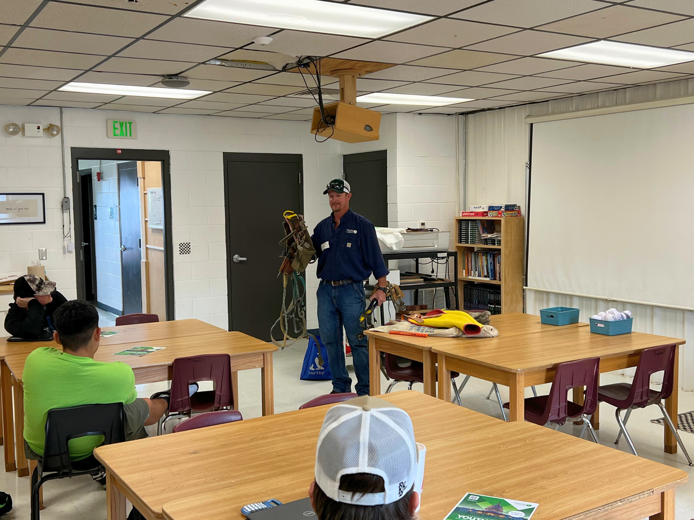 Curtis Hannah, safety and training coordinator for Ozarks Electric, recently visited West Fork High School’s Mechanical, Electrical and Plumbing class to speak with junior and senior students.